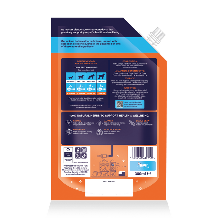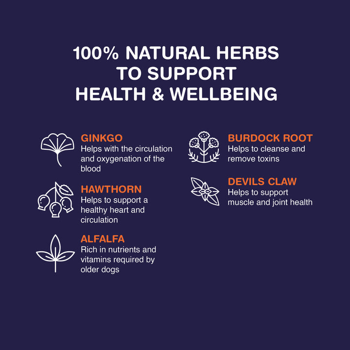 Who is it for: This gentle herbal blend is designed to support older dogs in maintaining joint health and overall vitality.