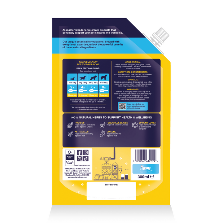 Daily Health Supplement for dogs - Support your dog’s sensitive tummies with Windy Hound 100% Natural Herbs Tonic.